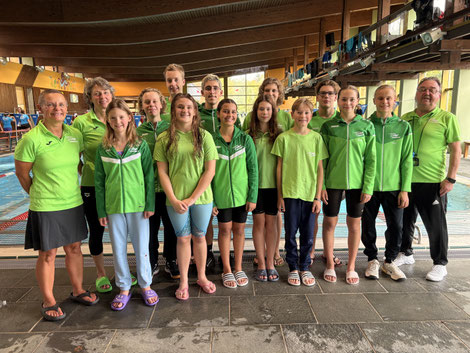 Fleißigster Punktesammler war Neo Bühler (2013). Der Schwabenkader-Athlet stand sechsmal ganz oben auf dem Treppchen und belegte einmal Rang zwei, was insgesamt 55 Punkte ergab. Zudem erschwamm er mit 2:26,49 über 200m Freistil die punktbeste Leistung in seinem Jahrgang. Dafür wurde er mit einem extra Pokal ausgezeichnet. Der zwei Jahre ältere Ben Bandlow steuerte mit seinen sechs Einzelrennen 40 Zähler zum Lindauer Konto bei, wobei er mit 1:00,96 abermals die Minutengrenze streifte. Mit 34 Punkten war Lucas Trindade Rodriguez (2008) der drittfleißigste Punktesammler. Über 50m und 100m Schmetterling siegte er in seiner Wertungsklasse. Emilia Appel startete erstmals mit der Wettkampfmannschaft bei einem großen Wettkampf und meisterte diese Aufgabe mit Bravour. Als jüngste im Team siegte sie im Jahrgang 2016 bei all ihren vier Starts mit großem Vorsprung und steuerte so 32 Zähler bei. Auch Jonathan Zetsche (2014) war erstmalig mit „den Großen“ unterwegs. Über 100m Lagen holte er sich mit einem dritten Rang eine Medaille und zusammen mit seinen weiteren sechs Starts sammelte er 27 Punkte. Nur am Sonntag waren Till Puldo (2008) und Marlon Kränkel (2009) dabei, da sie am Tag zuvor zum Kampfrichter ausgebildet wurden. Während Pudlo über 50m Brust siegte, über beide Rückenstrecken als zweiter anschlug und somit 22 Punkte erschwamm, sicherte Kränkel 11 Zähler für das Konto. Mit vielen Bestzeiten fischte Serafina Stark (2012) 21 Punkte aus dem Wettkampfbecken. Nur einen Punkt weniger sammelte Aylin Rigal (2013). Neela Falkenroth (2011) schmetterte zweimal auf das Treppchen. Durch die weiteren guten Platzierungen schaffte sie 16 Punkte. Elin Bleicher (2010) blieb in ihrem starken Teilnehmerfeld medaillenlos, steuerte aber 10 Punkte bei, Lina Rupflin (2013) kam auf 7 Punkte. Eine Punktebank waren die vielen Staffeln des Wochenendes. Über 4x100m Brust, 8x25m Rücken, 8x50m Lagen sowie 10x50m Freistil musste die Mannschaft jeweils gemischt antreten, die 4x50m Freistilstaffel zum Veranstaltungsende mussten zwar als reine Männer und Frauen-Staffel, aber über 10 Minuten geschwommen werden. Ausschlaggebend war dort die erzielte Meter-Zahl. Insgesamt erbrachten die Staffeln 620 Zähler, was am Ende den guten Mannschaftswertungsplatz ausmachte. Abteilungseiter und Chefcoach Wilfried Fuchs, der am Sonntag als Schiedsrichter der Veranstaltung vor Ort war, nachdem er bereits am Samstag die Kampfrichterausbildung geleitet hatte, war voll auf zufrieden mit den Ergebnissen und strahlte über den Pokal für das Gesamtergebnis.