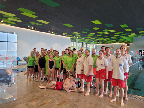 Ganz nach dem Motto „der frühe Vogel fängt den Wurm“ trafen sich siebzehn Übungsleiter, Helfer am Beckenrand und Kampfrichter am vergangenen Samstag morgen vor dem Beginn der offiziellen Badezeit in der Therme Lindau, um ihrere Rettungsfähigkeit aufzufrischen. Unter Anleitung und den kritischen Augen der Wasserwacht wurden die verschiedenen Abschlepptechniken sowie die Basics der unterschiedlichsten Rettungstechniken wiederholt. Acht Ausbilder der Wasserwacht überwachten alle Rettungsversuche und beantworteten geduldig alle Fragen der Lindauer Schwimmer. Pünktlich zum Beginn des Badebetriebs waren alle Übungen absolviert sowie ausreichend Herz-Lungen-Wiederbelebung wiederholt, so dass die Zertifikate verteilt werden konnten. Dank gilt der Wasserwacht, dass deren Ausbilder so zahlreich und zur frühen Stunde zur Verfügung standen sowie der Therme Lindau, dass die Wasserfläche dazu genutzt werden durfte.